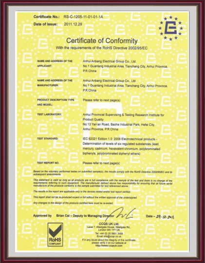 RoHS認證是《電氣、電子設備中限制使用某些有害物質指令》(The restriction of the use of certain hazardous substances in electrical and electronic equipment)的英文縮寫。